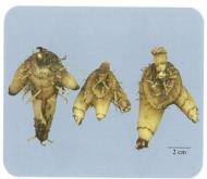 白及(1)其它考点:兰科块茎(2)鉴定:呈不规则扁球形,多有2~3个爪状分枝,表面灰白色或黄白色,有数圈同心环节,嚼之有黏性。(3)功效:收敛止血,消肿生肌